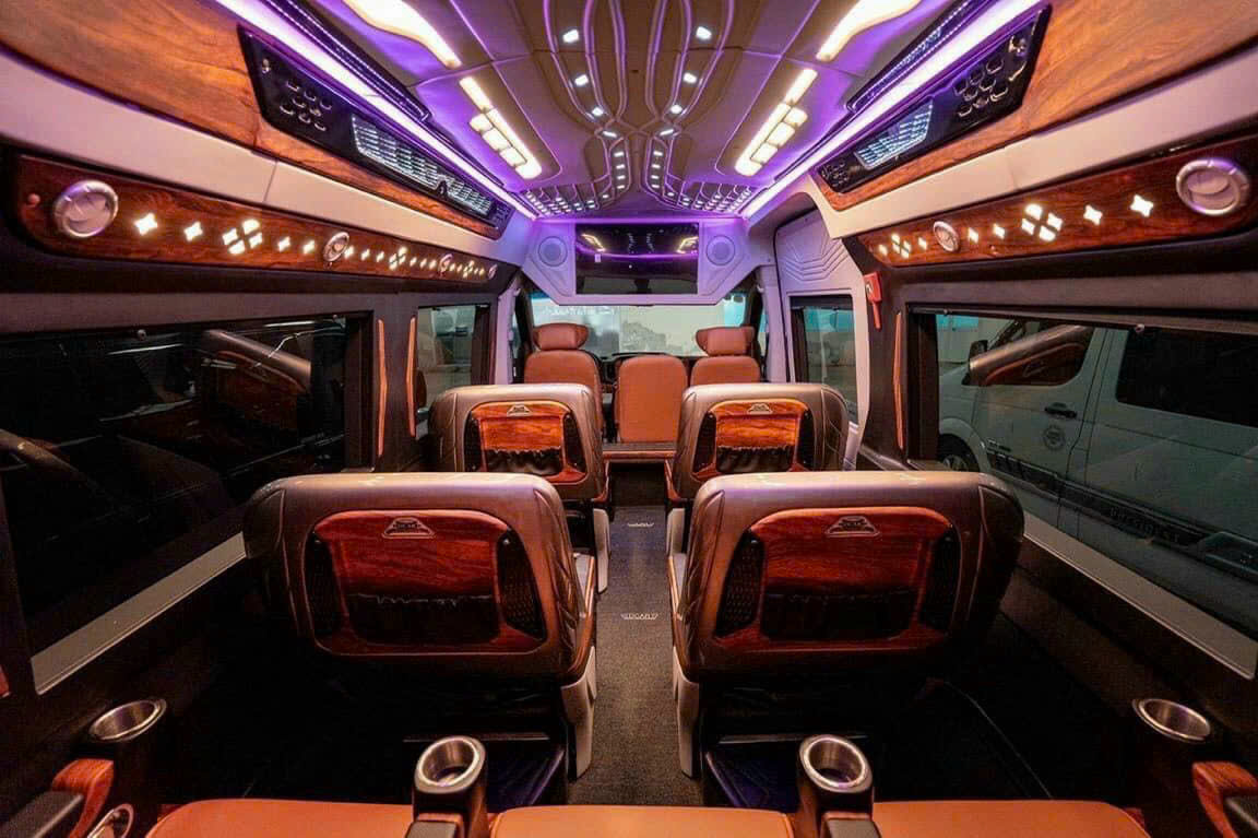 Dịch vụ xe Limousine 9 chỗ đưa đón tận nơi, khởi hành linh hoạt, tiện nghi cao cấp, wifi & nước suối miễn phí.